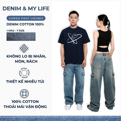 Quần jean CARGO PANT UNISEX ống suông thiết kế túi hộp túi lớn, quần bò dài nam nữ cá tính