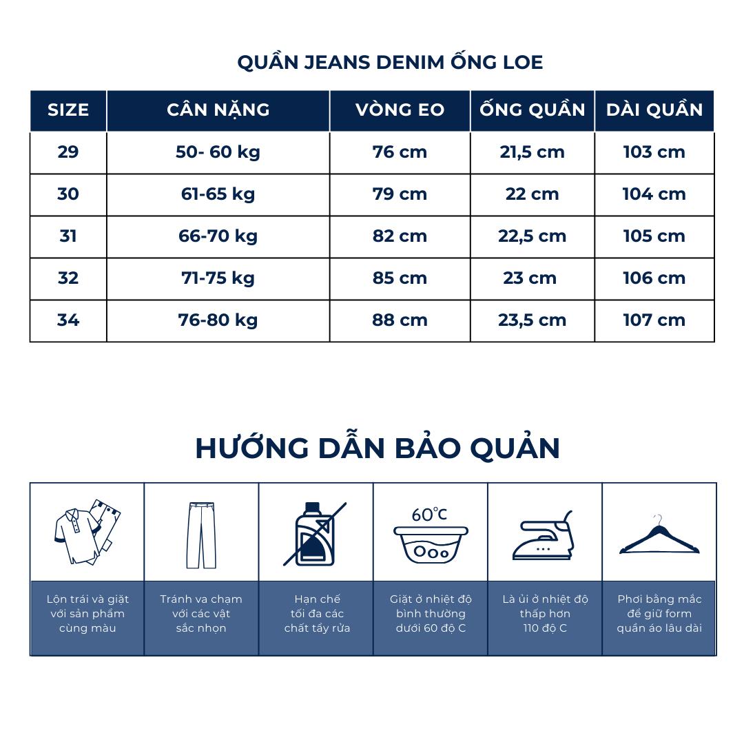 Form: Ống loe rộng vừa, không quá bó sát nhưng vẫn tôn dáng.