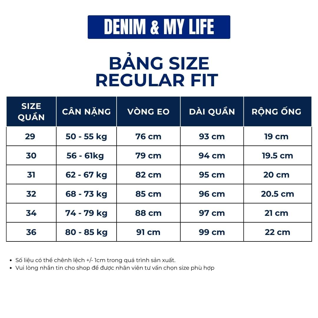 - Form: Regular Fit - ống suông thẳng, rộng vừa phải, thoải mái vận động.