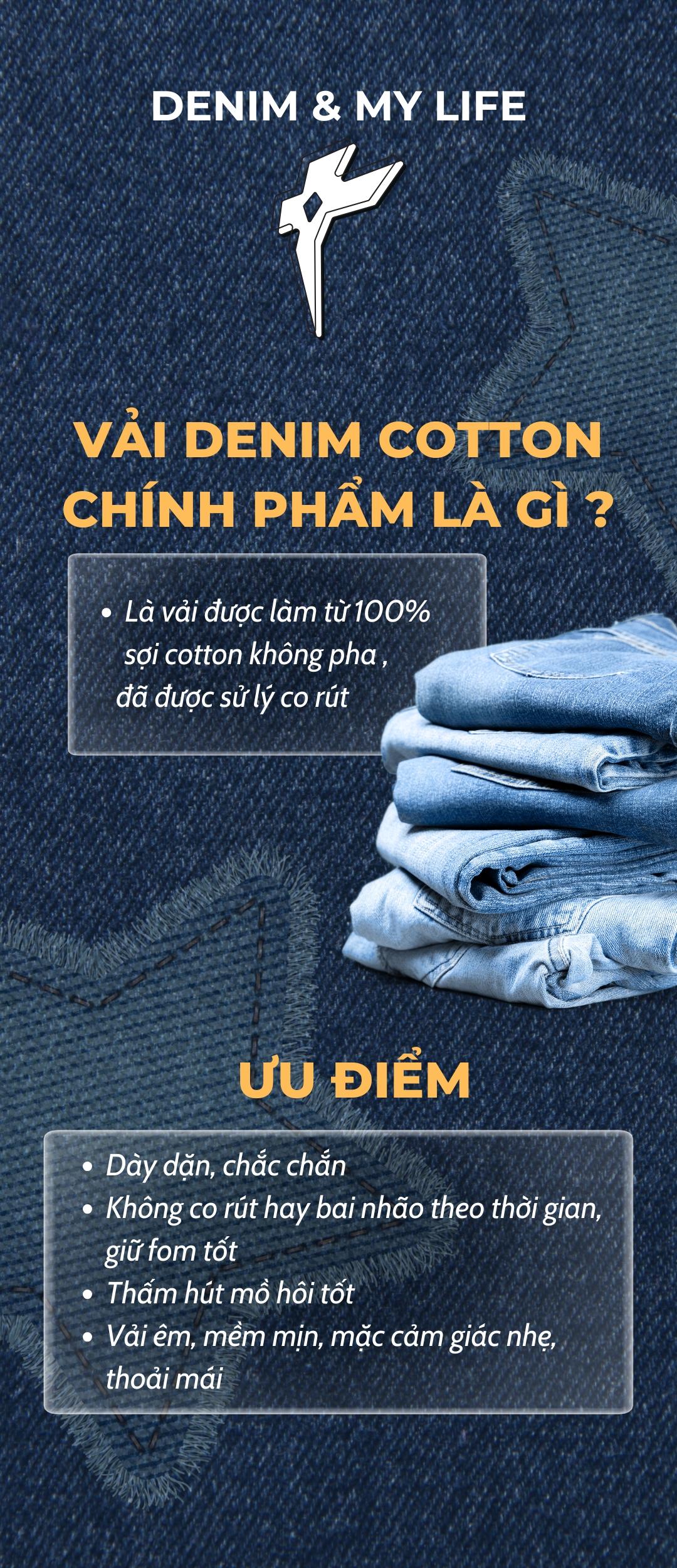 - Chất liệu: Denim Cotton cao cấp mềm mại và bền màu sau nhiều lần giặt.